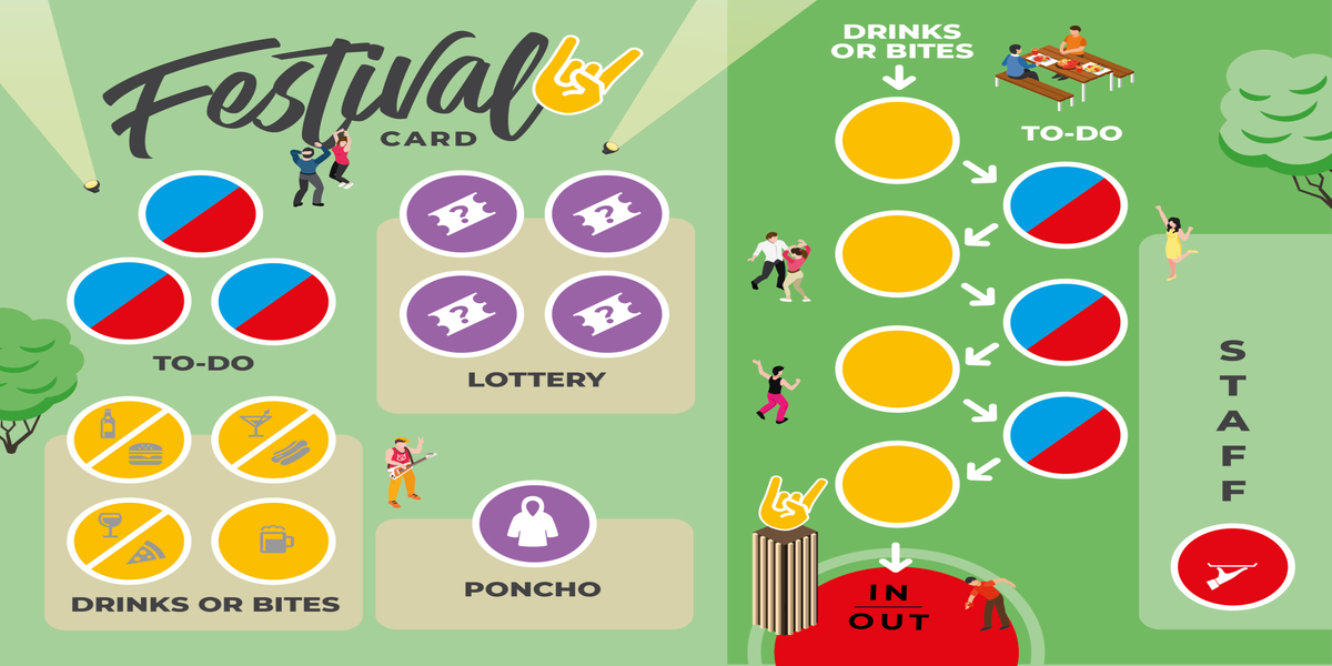 Tijdens het spelen van het Festivalspel waan je je op een echt Festival. Je luistert naar muziek, je eet en drinkt, je doet een vrijwilligersdienst en overal staan bezoekers soms hinderlijk in de weg...